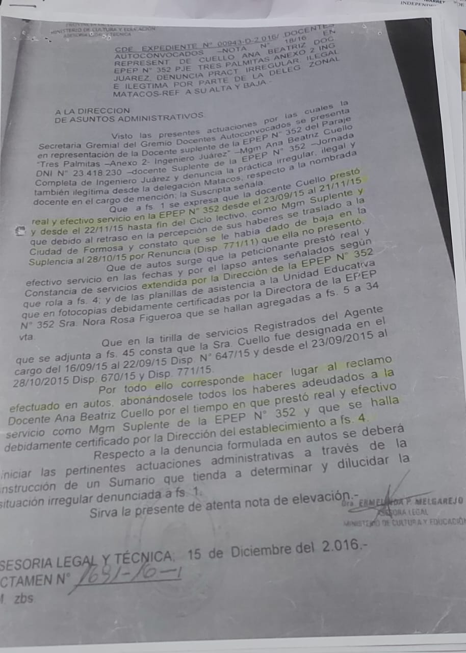 Después de casi una década de lucha y obstáculos burocráticos, el Superior Tribunal de Justicia de Formosa ordenó al Ministerio de Educación que, en un plazo de 30 días hábiles, reconstruya y resuelva el expediente de la docente Ana Beatriz, quien fue víctima de la falsificación de su firma en 2015.