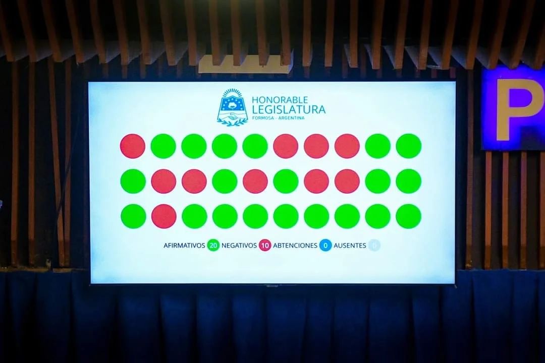 La sesión, que comenzó pasadas las 18 horas y se extendió por más de tres horas, contó con la presencia de 30 legisladores. El bloque justicialista votó a favor del proyecto en general y en particular con sus 20 representantes, mientras que los 10 legisladores de la oposición expresaron su rechazo: UCR, Libertad, Trabajo y Progreso, el radicalismo, el PRO y Nuevo País.