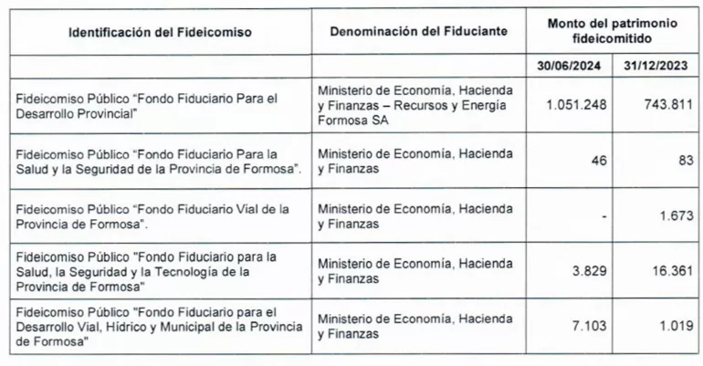 Según los últimos informes del Banco de Formosa, designado como agente fiduciario, el total del patrimonio fideicomitido asciende a $1.062.226.000 a junio del año pasado.