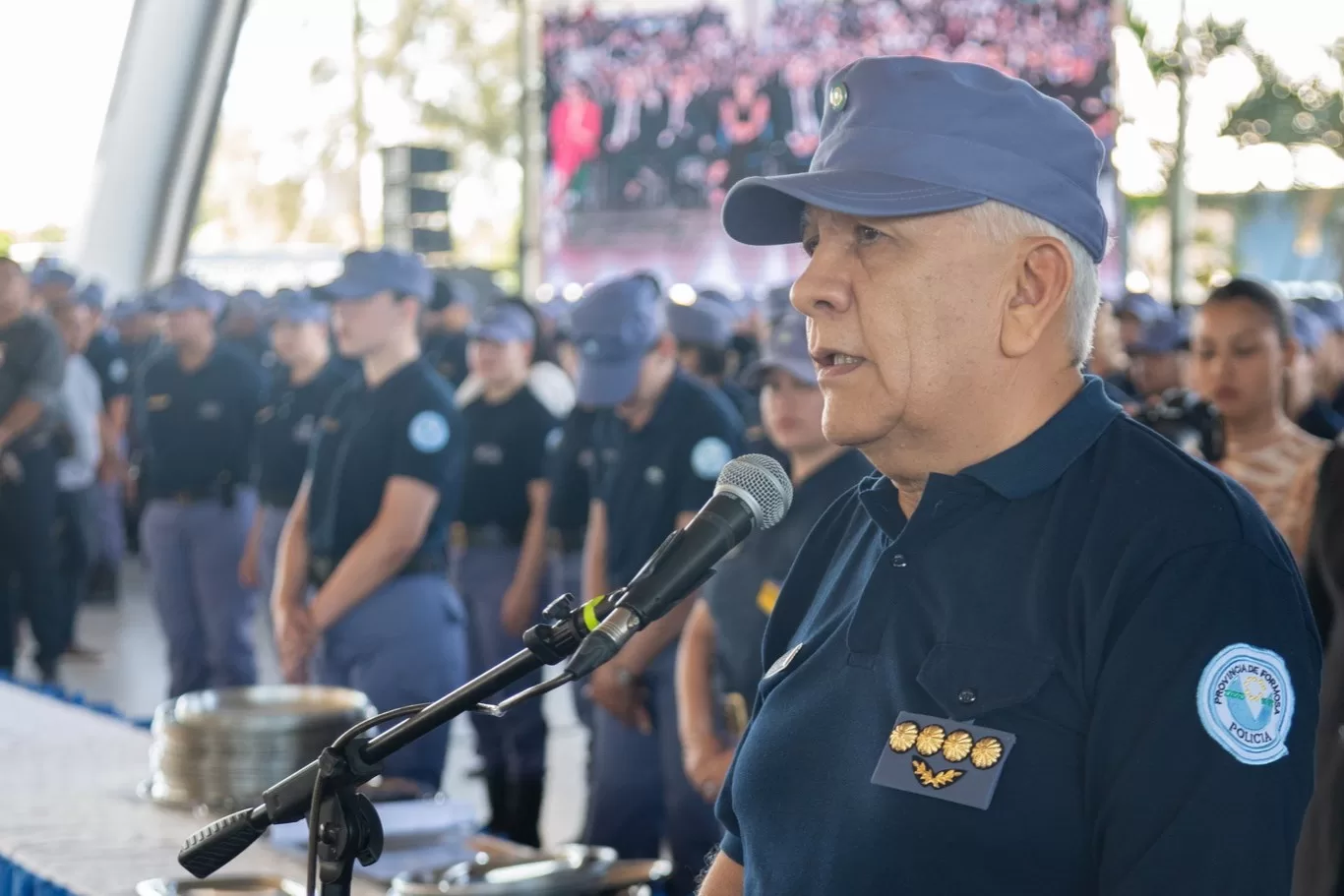 El jefe de la Policía de Formosa, Walter René Arroyo, brindó un llamativo discurso en el acto acto de entrega de insignias a 1353 efectivos de la Policía de la Provincia que ascendieron. Fue en la mañana del lunes en el Polideportivo Policial.