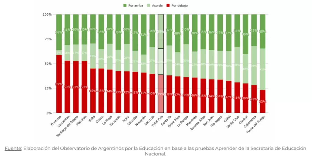 Formosa encabeza el ranking de provincias con mayor proporción de escuelas que rinden por debajo de lo esperado, según su contexto socioeconómico. Así lo indica el informe “El nivel socioeconómico no lo define todo”, elaborado por el Observatorio de Argentinos por la Educación y publicado en abril de 2025.