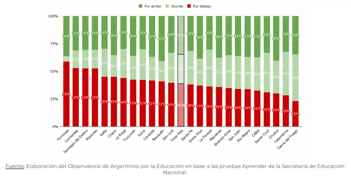 Formosa encabeza el ranking de provincias con mayor proporción de escuelas que rinden por debajo de lo esperado, según su contexto socioeconómico. Así lo indica el informe “El nivel socioeconómico no lo define todo”, elaborado por el Observatorio de Argentinos por la Educación y publicado en abril de 2025.