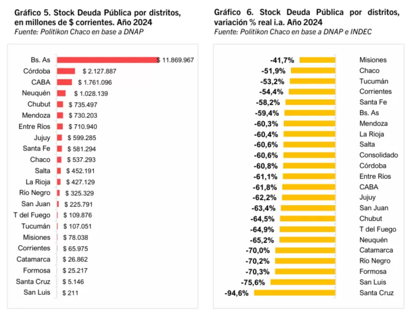 La provincia de Formosa finalizó el año 2024 con un stock de deuda pública de $25.217 millones, lo que marca una caída real interanual del 70,3%, la segunda más pronunciada del país. Así lo revela un informe de la consultora Politikon Chaco, basado en datos oficiales de la Dirección Nacional de Asuntos Provinciales (DNAP) y del INDEC.